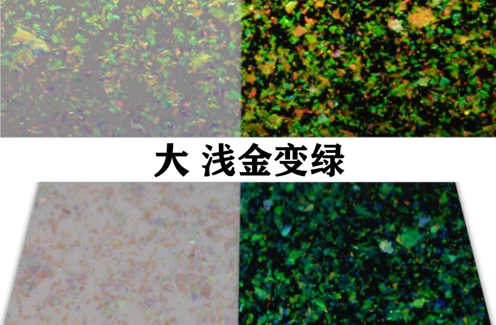 M-YG Optically variable Magnetic pigment/ink Green-Blue 5-37μm TOP VIEW-俯視圖 SIDE VIEW-側(cè)視圖